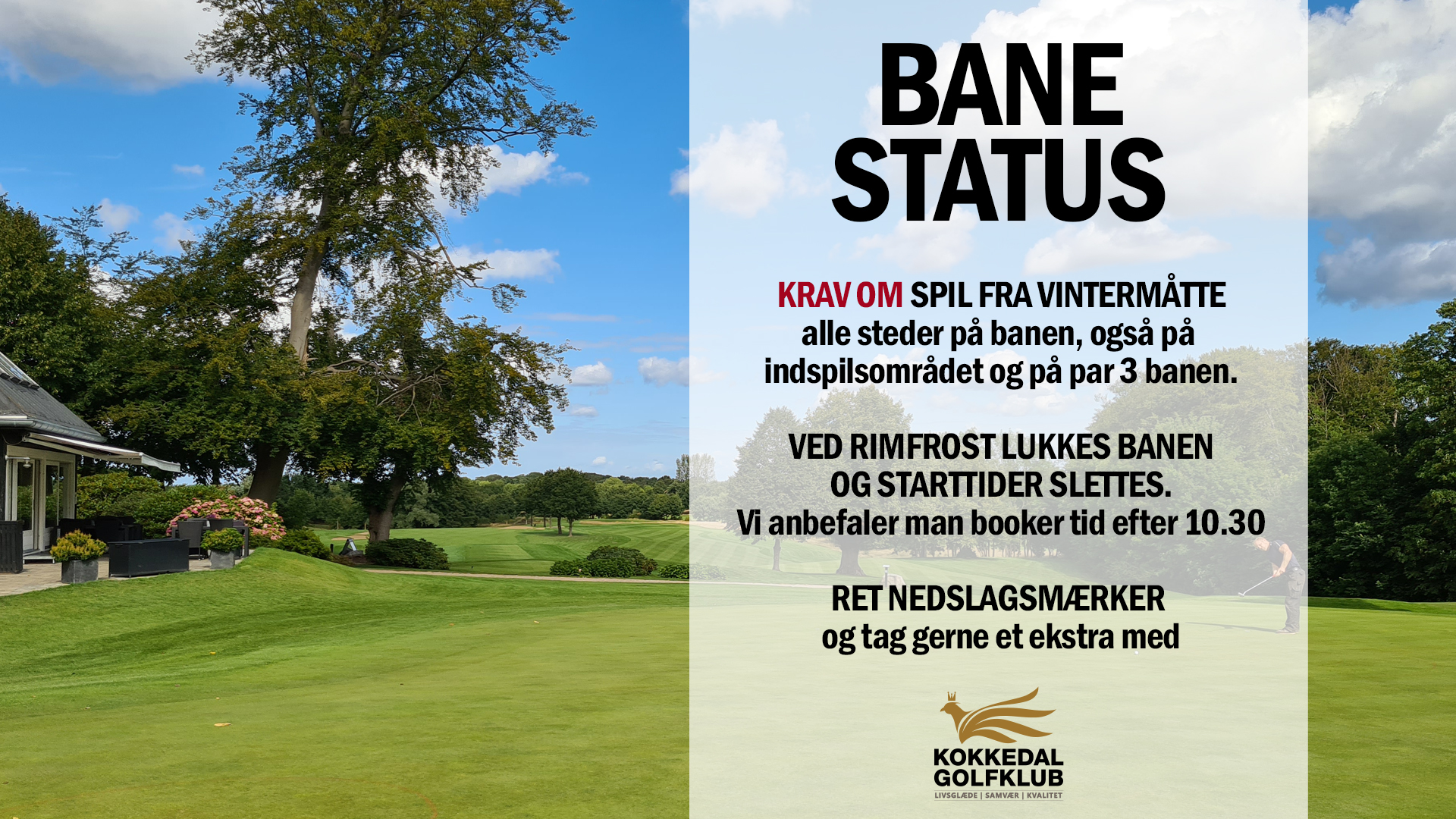 Husk også, at vintermåtte fortsat er et krav alle steder på banen, også på indspilsområdet og på par 3 banen.